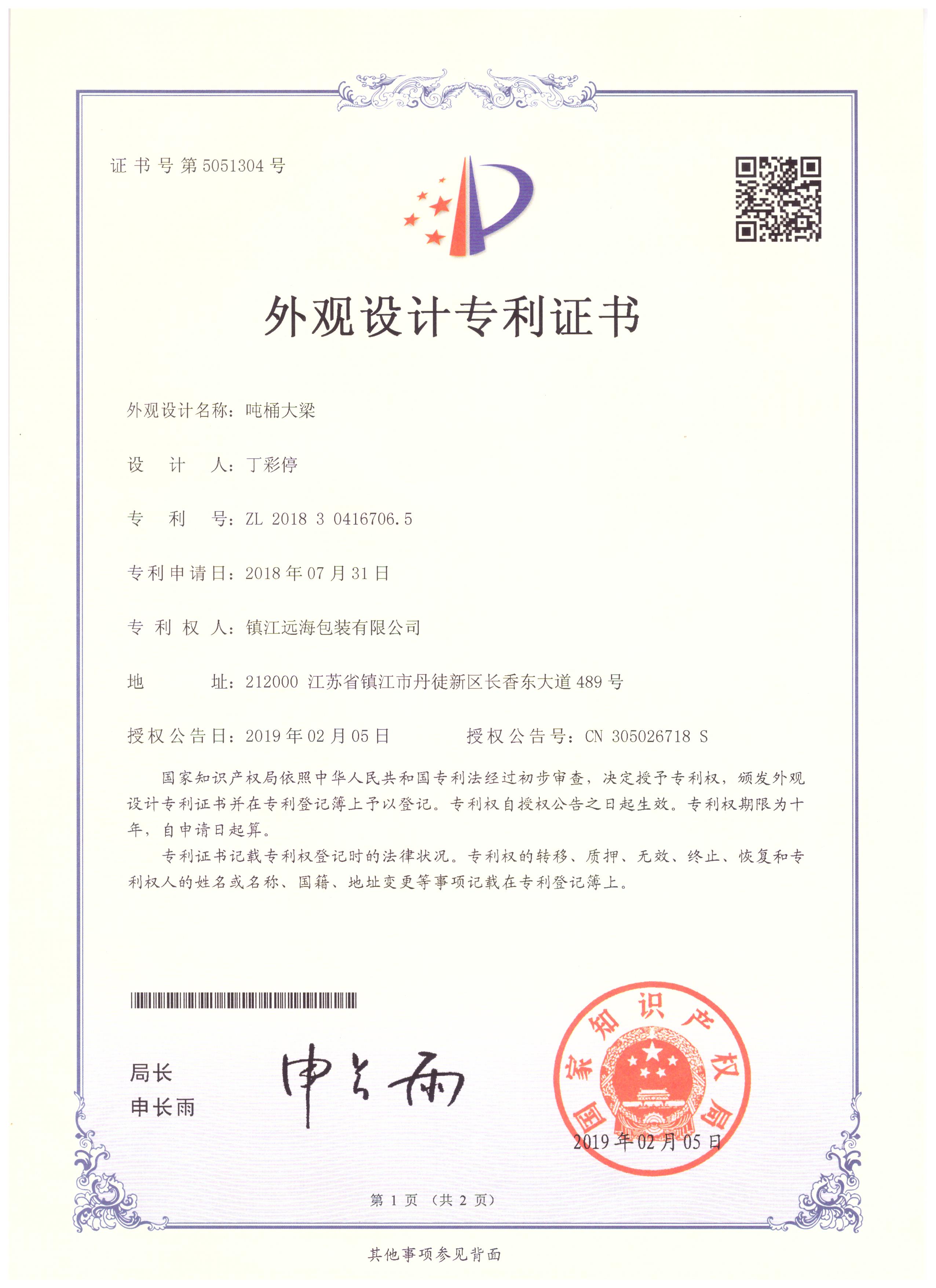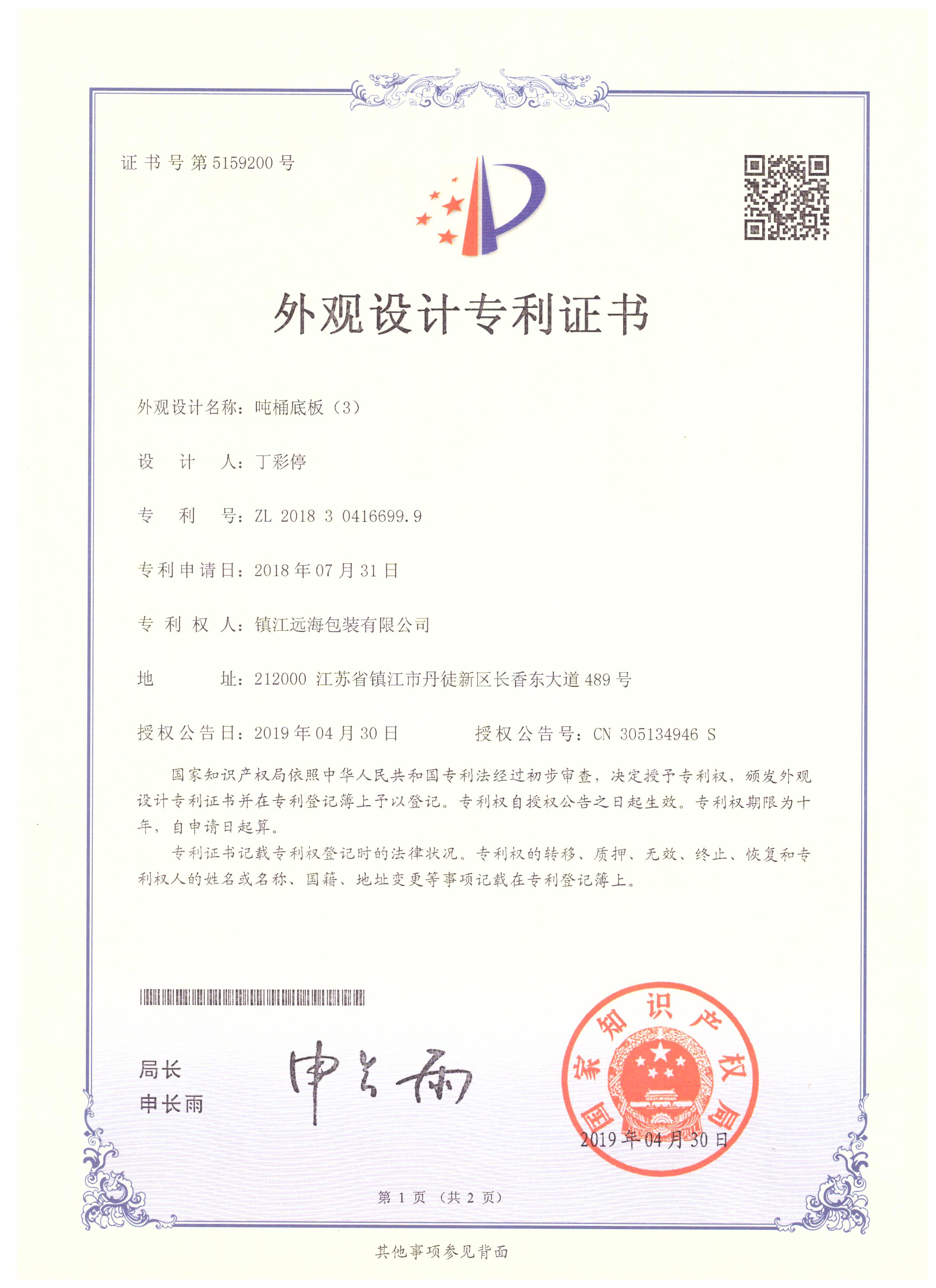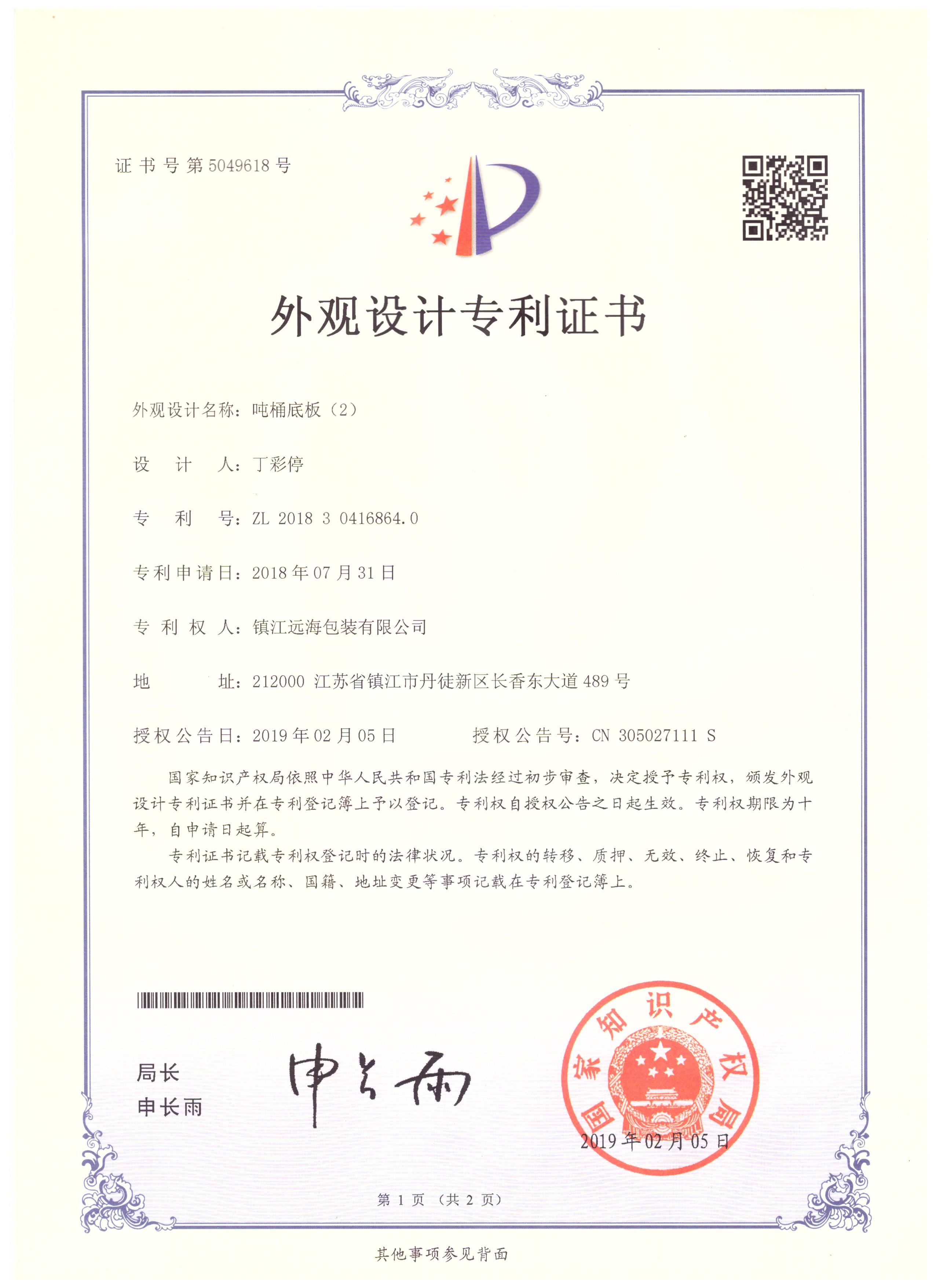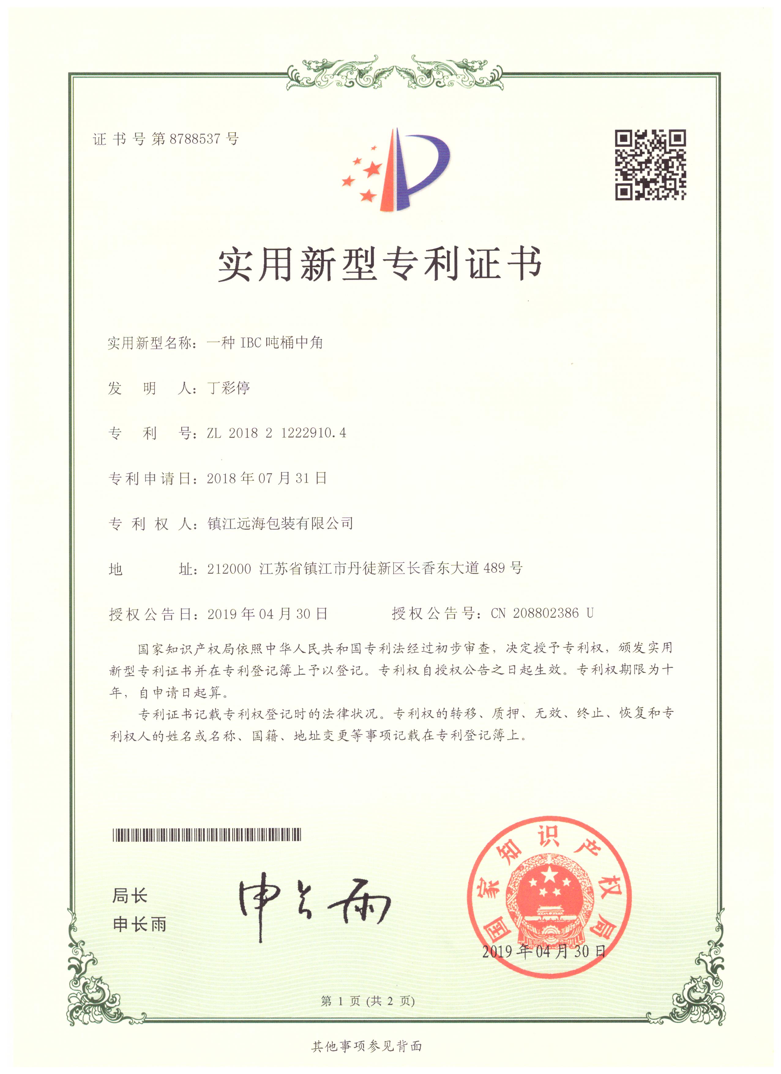 鎮(zhèn)江遠(yuǎn)海包裝有限公司成立于2014年8月,是一家專注于生產(chǎn)IBC噸桶及零配件的企業(yè),主要產(chǎn)品有各種型號(hào)的底板、橫梁、底角、標(biāo)牌、鍍鋅焊管等。公司擁有相關(guān)產(chǎn)品的外觀型和實(shí)用型8項(xiàng)專利。